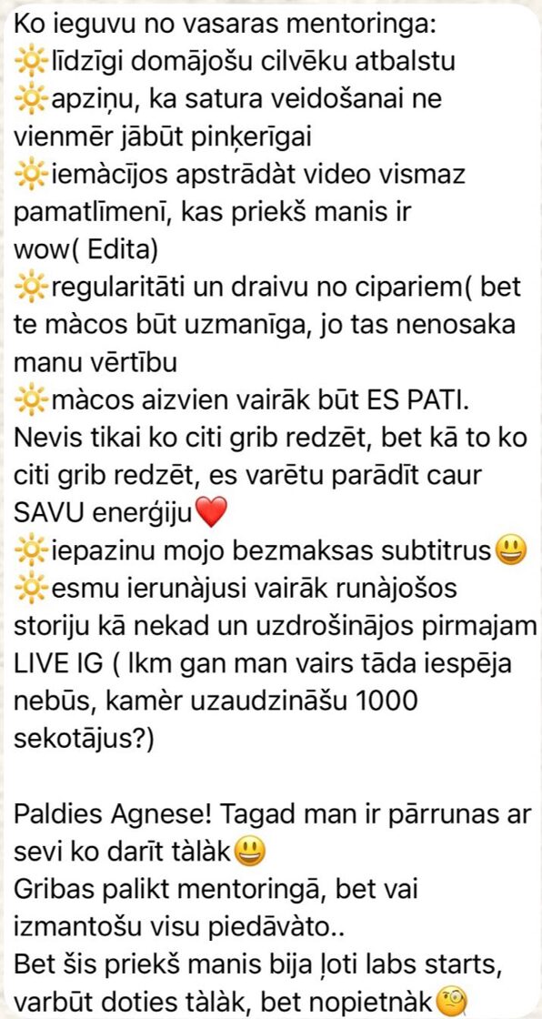 Šis mentorings tev ir ja: