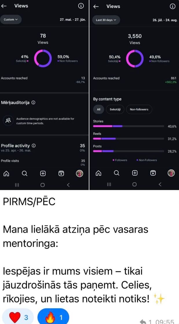 - 1x mēnesī ir Zoom mentoring - jautājumi, profilu analīze, trendi, situācijas.